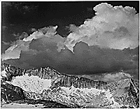 According to his friend James Alinder, “The spiritual importance of the mountains to Ansel’s evolving understanding of his photography, his environmental ethic, and his personality cannot be overstated...” Amid the “high altars,” as he called the peaks, decked with towering thunderheads, glistening lakes, and raging waterfalls, Adams found the Infinite. “His reverence for these places,” says John Stzarkowski, “illuminates each image.”